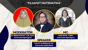 Melalui zoom,pada tanggal 15 April 2023, prodi magister matematika Undip menyelengarakan kukiah umum “Filsafat Matematika” dengan pembicara utma Prof. Dr. Sri Wahyuni dari Matematika UGM.